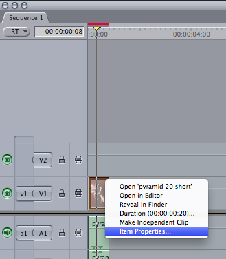 You can tell if this is happening by clicking on Item Properties for the clip (either on the timeline or in the bin). To do so right-click (or control-click if you only have a one-button mouse) on the clip: