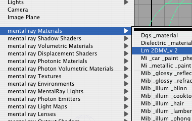 - lm_2DMV appears in the HyperShade at the `Create mental ray Nodes/Materials` tab. (If you don’t have this tab then create an environmental variable called MAYA_MRFM_SHOW_CUSTOM_SHADERS set it to 1 and restart Maya. It will enable the display of Mental Ray nodes.)