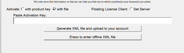 Switch to [x] with file Paste your Activation key Press Generate XML